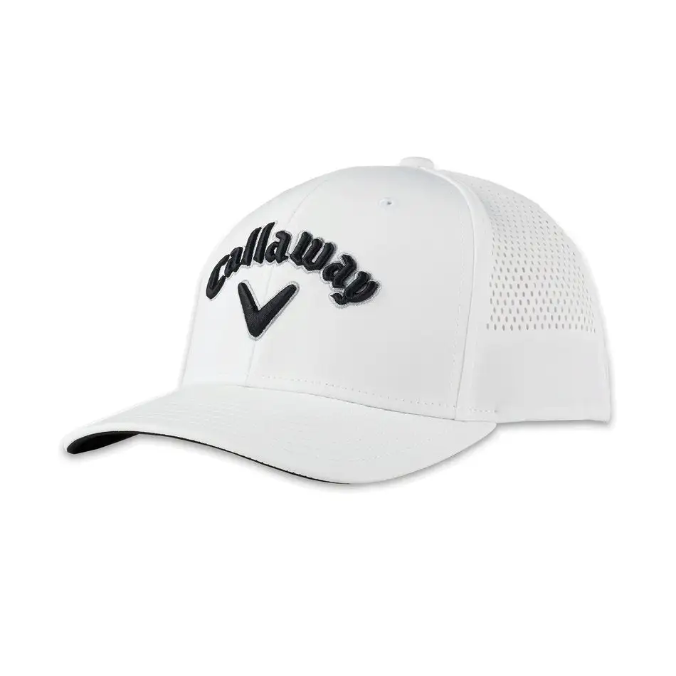 NEW! Four-way stretch performance moisture wicking tech fabric with laser perforated venting keeps you dry and comfortable even on the hottest days.