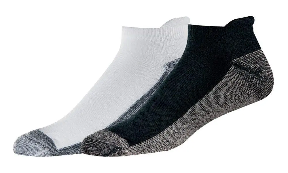 FootJoy reinforces the heel of its socks by double-layering the heel area which provides support and cushioning in a known high abrasion area.