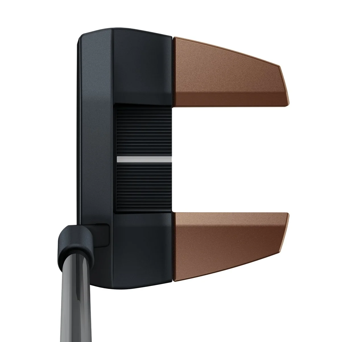 The Heppler putters offer a machined, solid face for golfers who prefer a firmer impact feel and sound. Multi-material (steel and pressure-cast aluminum) mallets and mid-mallets provide extreme forgiveness and optimal CG for accuracy and consistency. A premium, contrasting copper-and-black finish provides alignment cues and visual interest. A stiffer adjustable-length shaft (in exclusive black chrome) is standard and golfers can be fit for all stroke types (Straight, Slight Arc, Strong Arc).