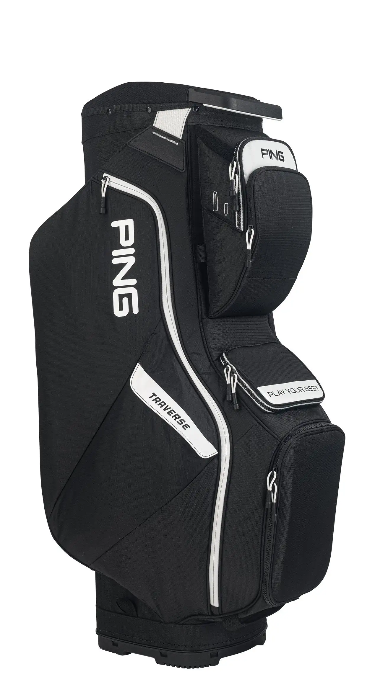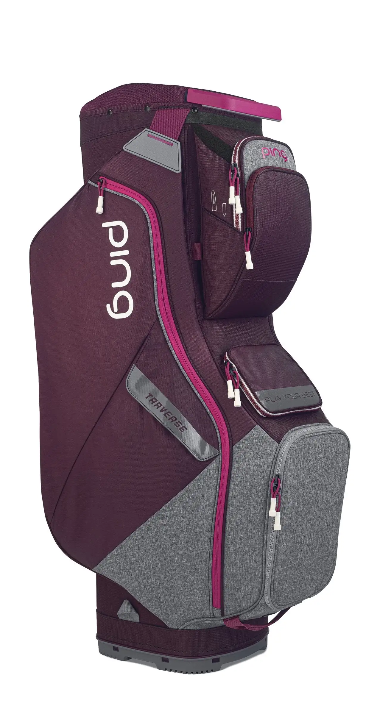 Newly designed, PING’s lightest cart bag has two large wells for oversized grips in the 14-way top. Thirteen pockets include a cooler pocket, ball pocket, and a range-finder pocket. Two new ladies colorways and a MultiCam version (through our Custom Bag Builder program) are available.