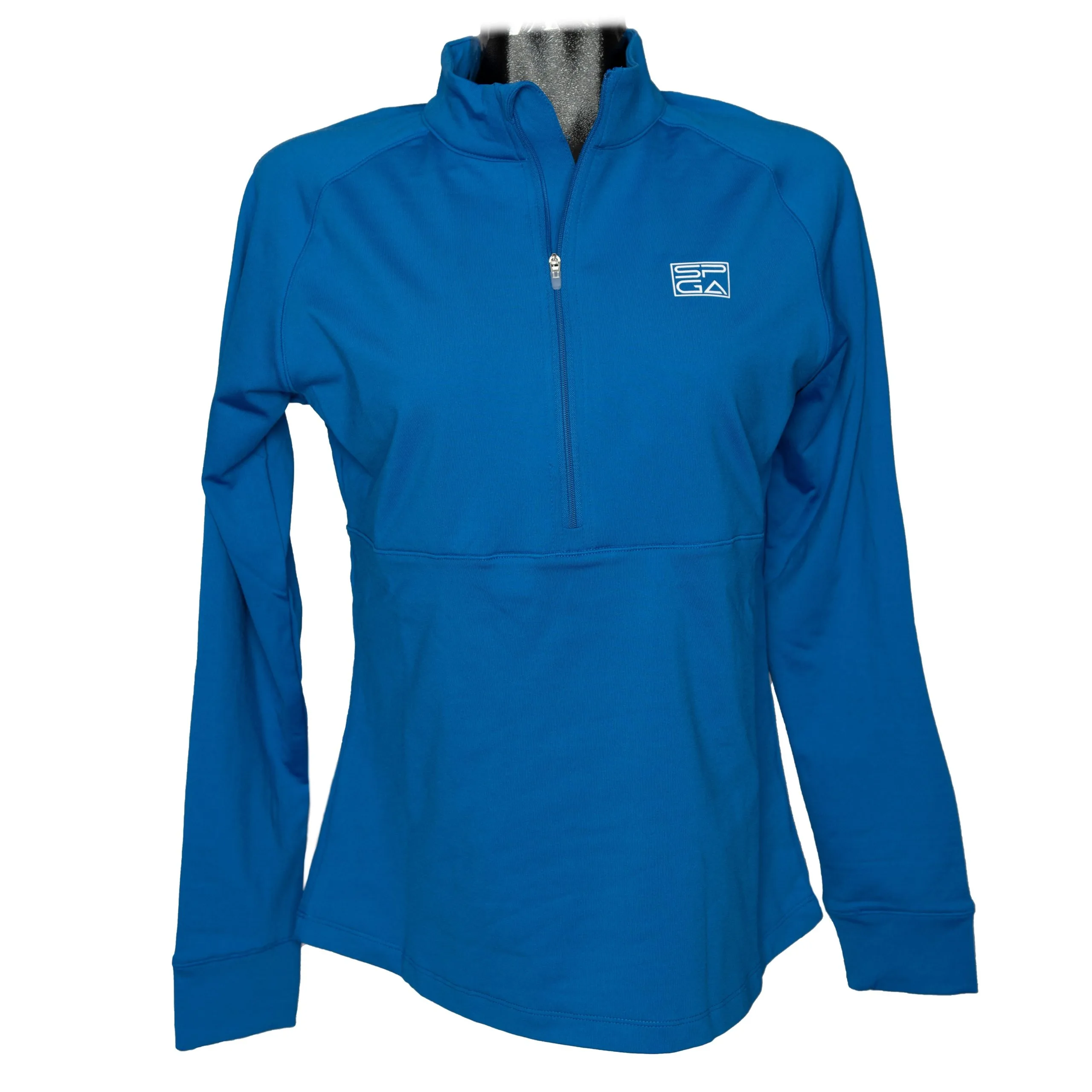 Cool air, don’t care! Stay warm on those cool golf days with this comfortable 1/2 zip jacket.